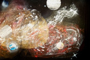 | "Organized Chaos" series is a visual interpretation by the artist describing the birth of the universe. The science of organize chaos concerns itself in random pattern that is found in nature. What seems like order, nature also contains variables that cannot be predicted. John Spears uses this approach to obtain these images. Using a blank silk screen he actually throws the paint onto the screen and uses the squeegee as a paintbrush. This spontaneity freezes the action of the paint onto the canvas resulting in images that are unpredictable and never seen before. It is the magic that is found in this approach to the silkscreen. |